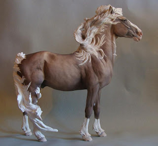 At this point, with the glaze over the front end, I could hold the front end and spray color on the tail, though there is no photo of that part. I sprayed the mane and tail with varying yellows, taupes, and greys.